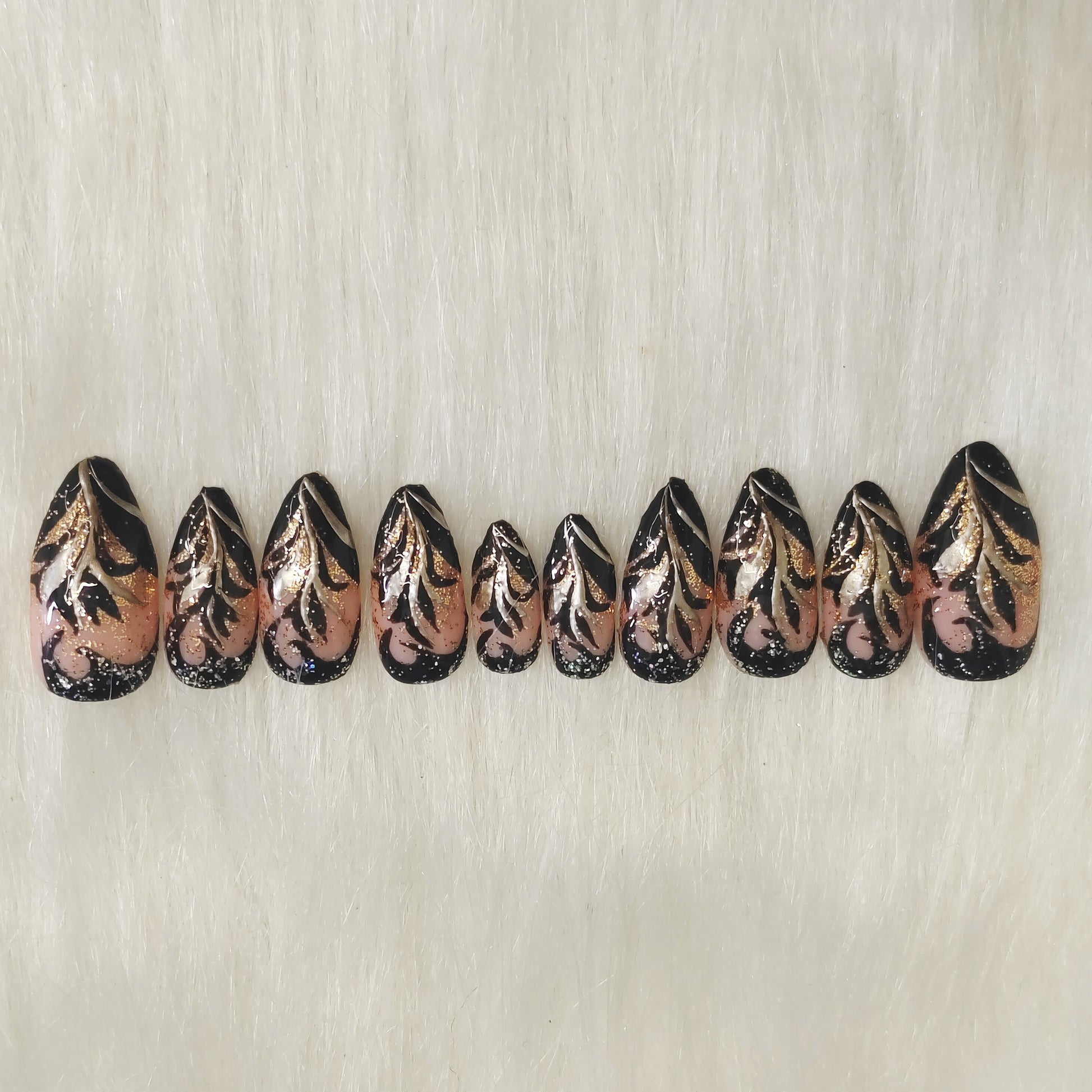 Step up your style status with Black Abstract Nails! These premium nails are perfect for any occasion, giving you an immediate boost of sophistication and long-lasting durability for 5-6 uses. Make a statement with our Glue-On Nails, guaranteed to draw attention with intricate designs!