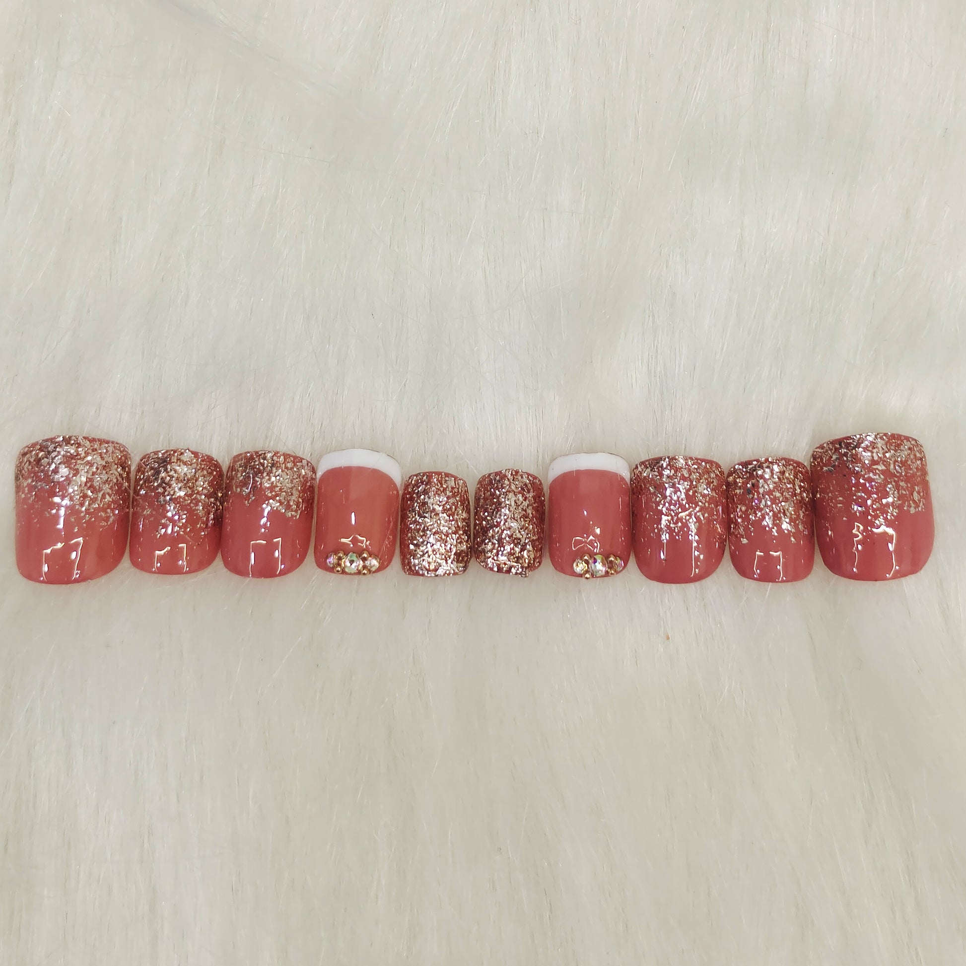 Elevate your fashion game with Embellished Golden Glitter French Nails! These top-notch nails are ideal for any event, providing instant elegance and lasting strength for 5-6 applications. Add a special touch to your appearance with our Glue-On Nails, sure to make you the center of attention with a hint of sparkle!