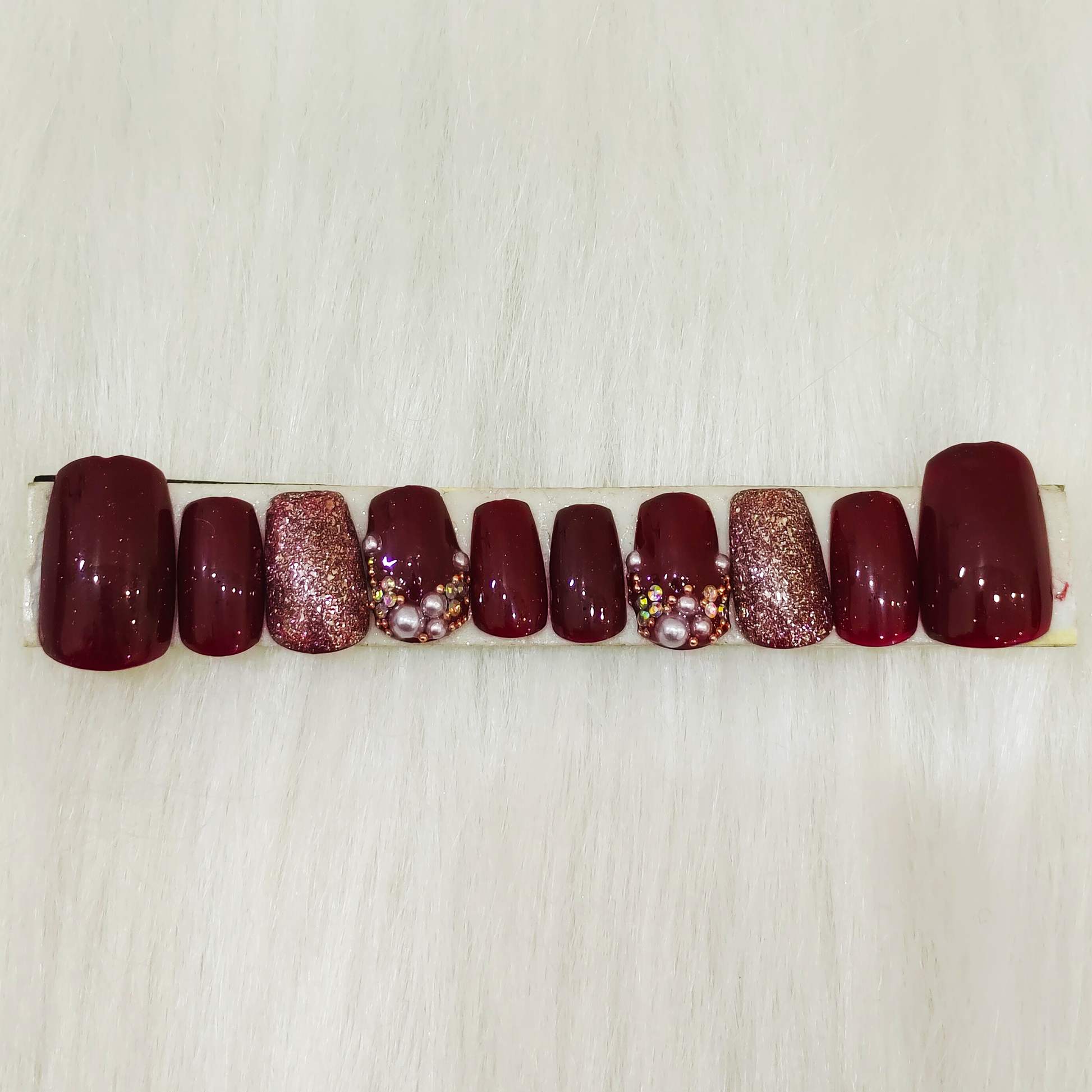Upgrade your look effortlessly with our dazzling, high-quality press-on nails. Customisable, easy to apply, and long-lasting for a salon-like finish. Reusable up to 5-6 times. Perfect for any Party, these Press On Nails with a Touch of Glamour will make a statement and turn heads.